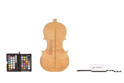 All'interno è presente un'etichetta che riporta: "Giacomo e Leandro Bisiach fecero in Milano l'anno 1961 (61 manoscritto). Fatto per il Museo della Scienza e della Tecnica in Milano (frase anche questa manoscritta). Lungo la mezzeria a matita si riporta "Acero rossiccio dell'Italia centrale". Il fondo faceva parte della vetrina, poi dismessa, IGB-5559 che mostrava i passaggi principali della lavorazione di un violino.