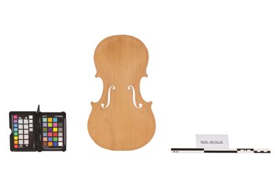 La tavola fa parte del materiale didattico fornito dai fratelli Giacomo e Leandro Bisiach per la ricostruzione di un laboratorio - la cosiddetta "bottega del Liutaio" - per la sezione Strumenti Musicali del Museo aperta nel 1961. Corrisponde al n.7 del verbale di consegna Bisiach del 9 maggio 1961 che specifica: "tavola da violino già finita esternamente e internamente tranne la filettatura (lavoro eseguito dal Liutaio cremonese Romeo Antoniazzi)". Faceva parte della vetrina, poi dismessa, IGB-5560.