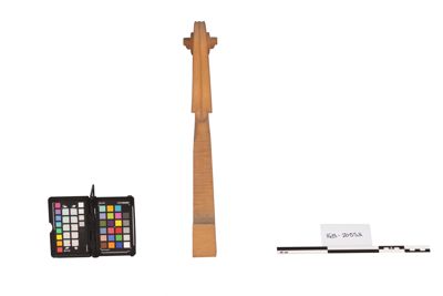 Il manico è in legno non verniciato. E' presente l'etichetta di carta con n.27. Sulla parte della tastiera ci sono delle scritte in rosso ma poco decifrabili.