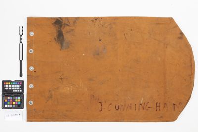Sacco arancione appartenuto all'alpinista J.Cunningham contenuto in una sacca con logo Moretti, arancione, contenente vari oggetti della spedizione anglo-italiana al Distaghil (1957) dell'ing. Piero Ghiglione, tra questi:
