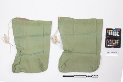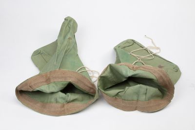 Ghette per alpinismo contenute in una sacca con logo Moretti, arancione, contenente vari oggetti della spedizione anglo-italiana al Distaghil (1957) dell'ing. Piero Ghiglione, tra questi: