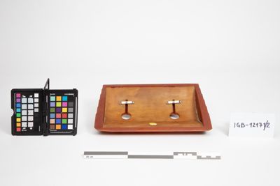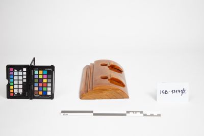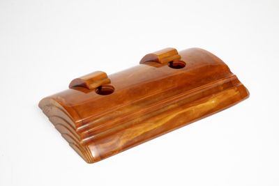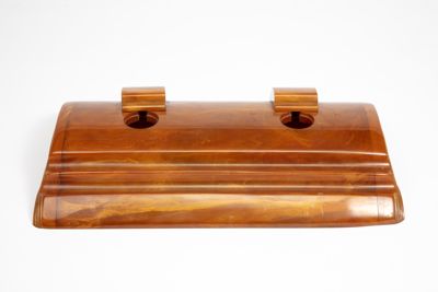 Portacalamaio doppio del set da scrivania Carvacraft in resina fenolica color ambra.