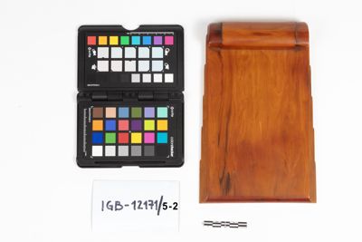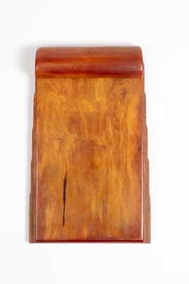 Portablocco del set da scrivania Carvacraft in resina fenolica color ambra.