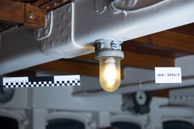Lampada stagna di sinistra all'interno della sala di pilotaggio del TN Conte Biancamano