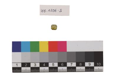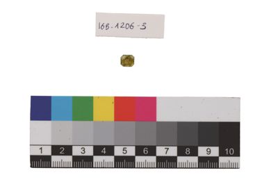 Vesuvianite tagliata e lucidata a tavola, di colore verde-giallo, località di provenienza: Testa Ciarva, Val d'Ala.