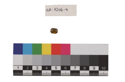 Vesuvianite tagliata e lucidata a tavola, di colore verde-giallo, località di provenienza: Testa Ciarva, Val d'Ala.