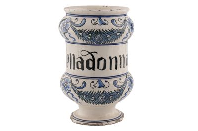 Vaso, detto anche pilloliere, a corpo globulare molto panciuto con alto piede a calice, svasato che sorregge un lungo stelo che si espande verso l'alto. Collo cilindrico, poco alto con stretta imboccatura con orlo piano che sostiene un coperchio a calotta, cuspidato con pomolo rilevato di forma tondeggiante.