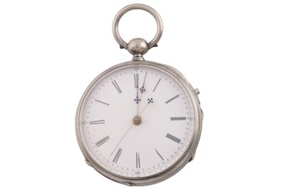 Cassa a savonnette in quattro parti: carrure godronata, fondo a guilloché con quattro decorazioni floreali al bordo e una centrale racchiusa da una cintura, cuvette con due fori, uno per la carica e uno per la regolazione dell'ora, lunetta senza vetro con decorazione a guilloché, quattro decorazioni floreali al bordo e uno scudo al centro racchiuso da una cintura. Pendente sferico con anello circolare spinato.